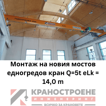 Монтаж на новия мостов едногредов кран Q=5t eLk = 14,0 m